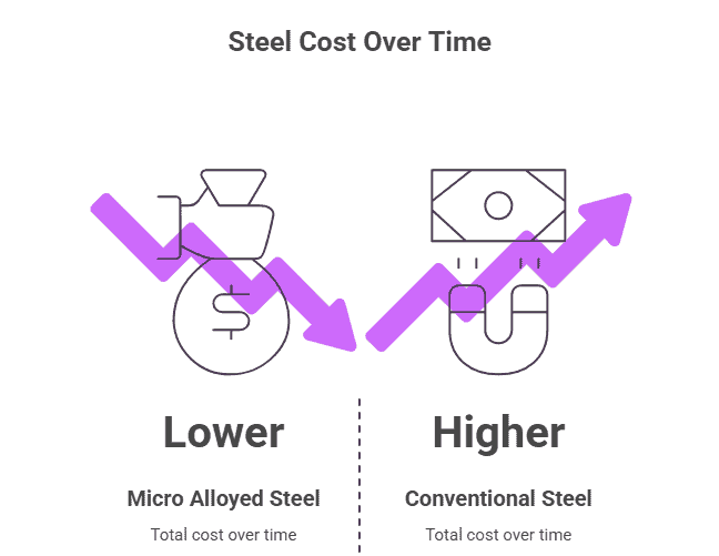 Micro alloying adds very small amounts of special metals. These metals can make the steel cost a bit more at the start.