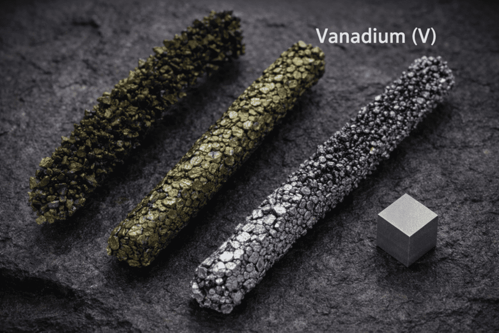 Vanadium works especially well when the steel cools down after being heated. As the steel cools, the vanadium particles form and spread evenly. This helps increase strength without making the steel too hard or brittle.